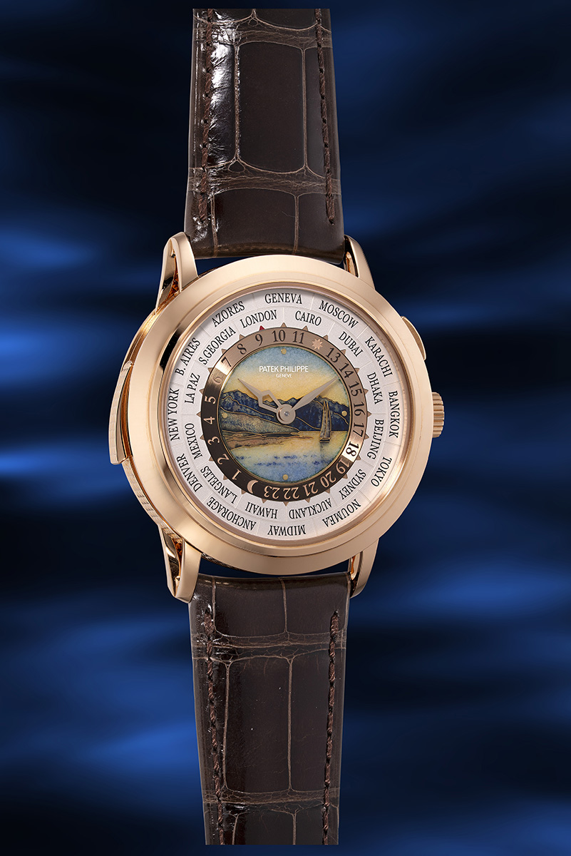 Patek Philippe ref. 5531R-012 World Time Minute Repeater, ra mắt năm 2018, là một grand complication mang tính đột phá khi lần đầu tiên tích hợp chức năng world time với minute repeater (đồng hồ điểm chuông theo phút) cho phép chiếc đồng hồ vang tiếng chuông đúng với giờ địa phương của thành phố tại vị trí 12 giờ. Được đặt trong lớp vỏ vàng hồng 18K với hoa văn khắc Clous de Paris và mặt số men cloisonné tái hiện những vườn nho Lavaux, mẫu xuất hiện trong phiên đấu giá mùa này thể hiện trọn vẹn sự tận hiến của Patek Philippe dành cho nghệ thuật chế tác.