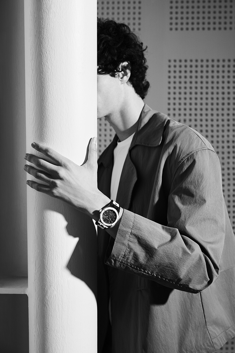 Khoác lên mình bộ vỏ thép không gỉ phủ PVD kép xám than cùng vành bezel đen quyền lực, tạo phẩm phô diễn thế giới nghệ thuật siêu thực của WOTTO qua kỹ thuật in tone-on-tone ẩn hiện đầy kín đáo. Yếu tố thị giác được đẩy lên cao trào với kim phút mang hình dáng “bóng ma” phát quang, kết hợp cùng bộ kim đen phủ Super-LumiNova và kim giây màu hồng rực rỡ mang lại nhịp điệu trẻ trung.