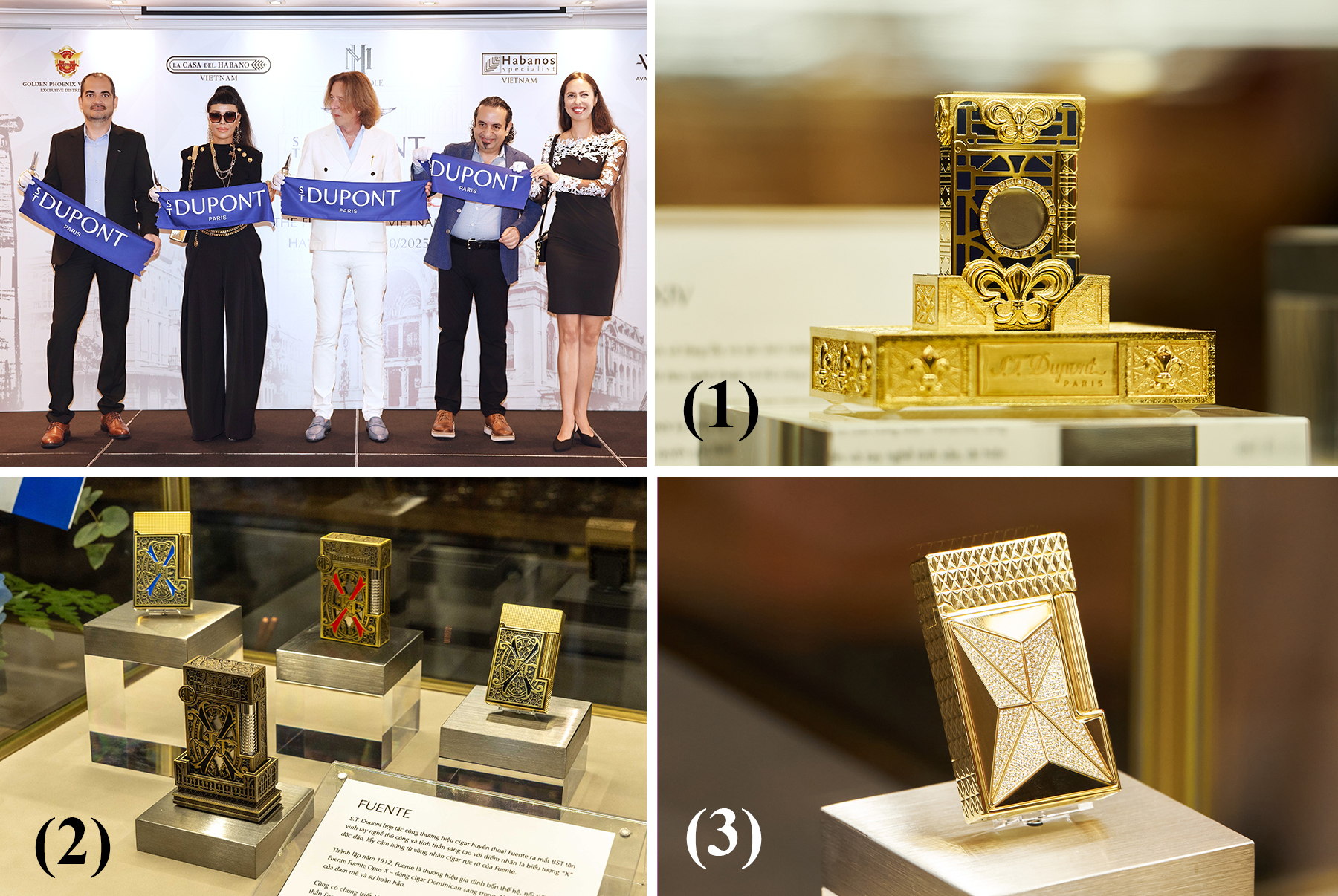 Các khách mời vinh dự tại sự kiện S.T. Dupont World Tour, cùng với một số bộ sưu tập trưng bày tại buổi triển lãm: (1) Louis XIV mạ vàng, khảm kim cương; (2) Fuente kết hợp cùng thương hiệu Arturo Fuente danh tiếng với logo thương hiệu được chạm khắc tỉ mỉ; và (3) Diamond Fire X đính kim cương quý hiếm.