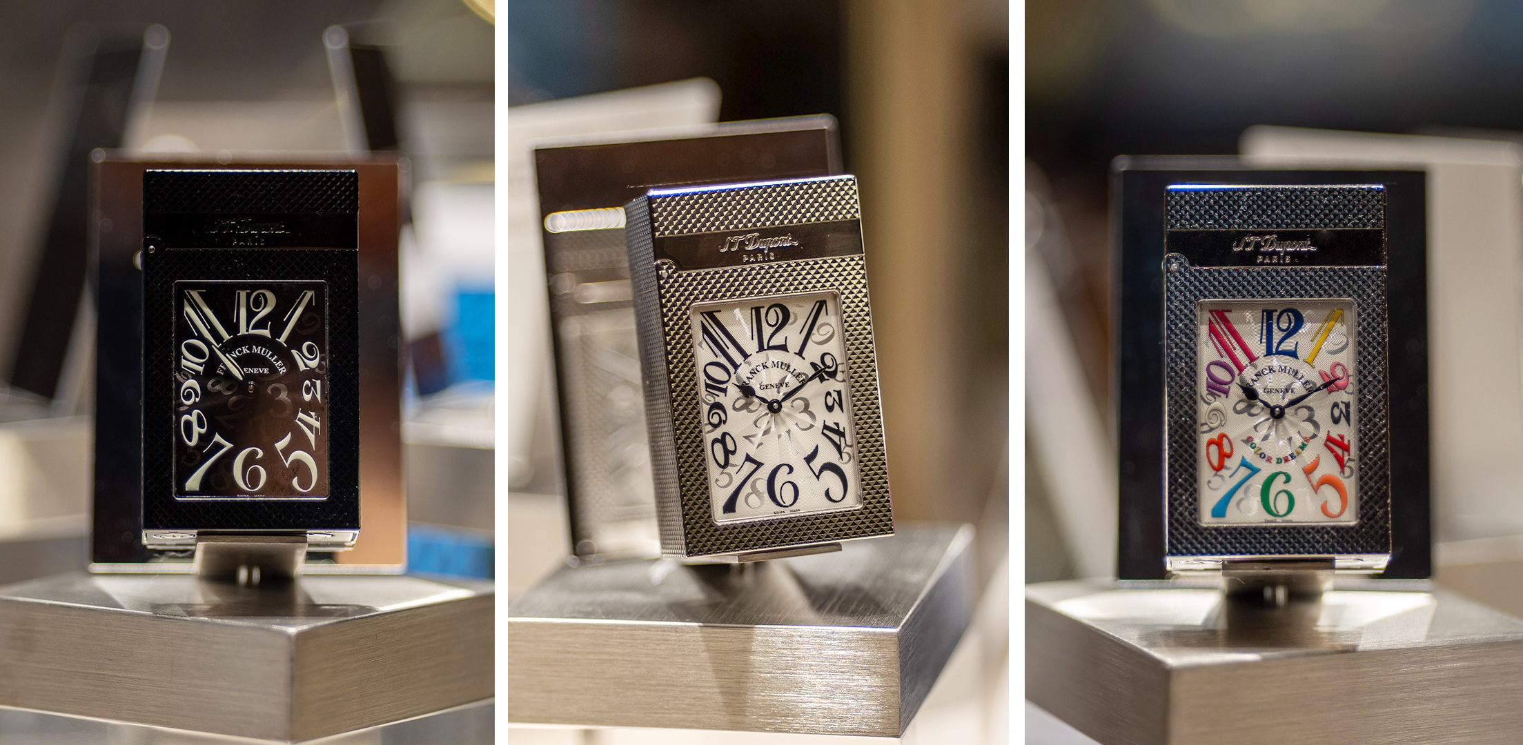 Chiếc bật lửa Master Lighter kết hợp cùng thương hiệu đồng Thụy Sĩ danh tiếng Franck Muller gây chú ý khi sở hữu động cơ đồng hồ phức tạp, với các màu sắc đa dạng. Đặc biệt, phiên bản màu đen có mặt số phản quang trong bóng tối.