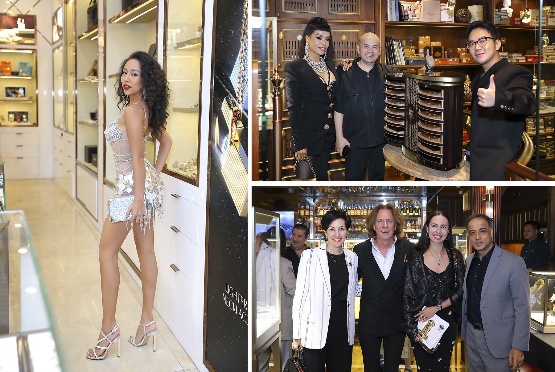 Các khách mời vinh dự đến tham quan buổi triển lãm S.T. Dupont World Tour tại Hồ Chí Minh: Ca sĩ Thảo Trang, doanh nhân Dương Quốc Nam, nhà thiết kế Chung Thanh Phong, và Tổng Lãnh sự Canada – Annie Dubé.